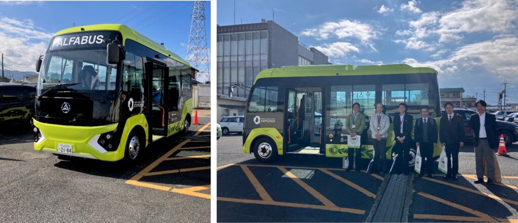 EVバスはCO2など排気ガスを排出しないため環境に優しく、騒音・振動も少ない滑らかな乗り心地が特徴です。試乗会ではアルファバス社製のE-CITY L6で市内のバスルートを運行し、奈良県広陵町および隣市の大和高田市の関係者などに試乗いただきました。
